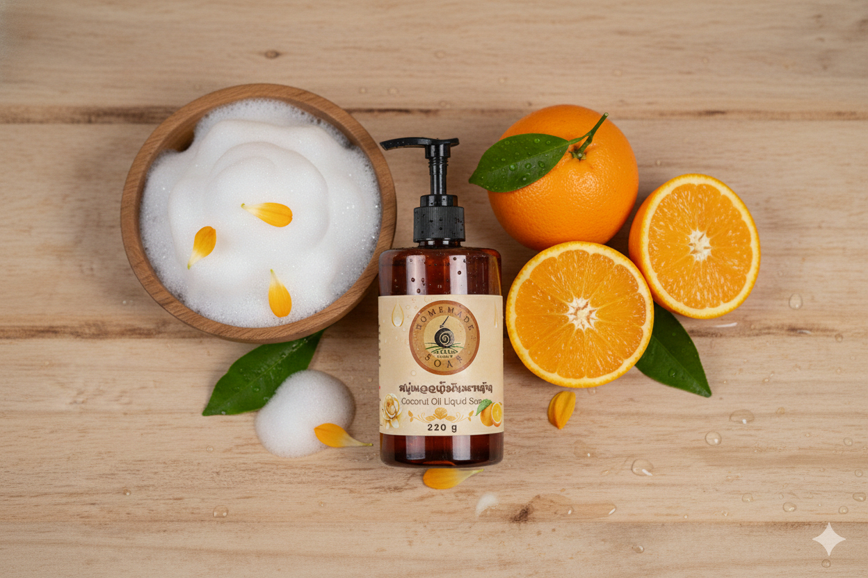 ✨ สรรพคุณและประโยชน์ (Benefits) ทำความสะอาดล้ำลึกแต่ไม่แห้งตึง: น้ำมันมะพร้าวช่วยชำระล้างสิ่งสกปรกและแบคทีเรียได้อย่างสะอาดหมดจด พร้อมเติมความชุ่มชื้นให้ผิวทันทีหลังอาบ ผิวนุ่มชุ่มชื้น: ด้วยวิตามิน E จากธรรมชาติ ช่วยฟื้นฟูผิวที่แห้งกร้านให้กลับมาเนียนนุ่ม สุขภาพดี กระจ่างใสอย่างเป็นธรรมชาติ: สารสกัดจากส้มมีวิตามิน C ช่วยผลัดเซลล์ผิวอย่างอ่อนโยน ให้ผิวดูเปล่งปลั่ง กลิ่นบำบัด (Aromatherapy): กลิ่นหอมสดชื่นจากส้มช่วยลดความเครียด ทำให้รู้สึกผ่อนคลายและกระปรี้กระเปร่าขณะอาบน้ำ 🧼 วิธีใช้ (How to Use) ทำให้ตัวเปียก: ล้างตัวด้วยน้ำสะอาด กดและถู: กดสบู่เหลวลงบนฝ่ามือหรือฟองน้ำถูตัวในปริมาณที่พอเหมาะ นวดผ่อนคลาย: ลูบไล้ให้ทั่วผิวกายจนเกิดฟองนุ่ม นวดเบาๆ เพื่อให้สารสกัดซึมเข้าสู่ผิวและสูดดมกลิ่นหอมเพื่อความผ่อนคลาย ล้างออก: ล้างออกด้วยน้ำสะอาด (คุณจะรู้สึกได้ถึงฟิล์มความชุ่มชื้นบางๆ ที่เคลือบผิวไว้ ไม่ใช่ความเหนียวเหนอะหนะ) ⚠️ ข้อควรระวัง (Cautions) การเก็บรักษา: เนื่องจากมีส่วนผสมหลักจากน้ำมันธรรมชาติ ควรเก็บให้พ้นจากแสงแดดจัดและที่ร้อนจัด เพื่อรักษาคุณภาพของน้ำมันและกลิ่นหอม การระคายเคือง: หากใช้แล้วเกิดผื่นแดง คัน หรืออาการผิดปกติ ควรหยุดใช้และปรึกษาแพทย์ทันที ระวังเข้าตา: หากเข้าตาให้รีบล้างออกด้วยน้ำสะอาดปริมาณมาก เหมาะสำหรับ: ใช้ภายนอกเท่านั้น […]